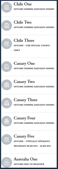 - Look for the telescope you're interested in, check its status, and select it.